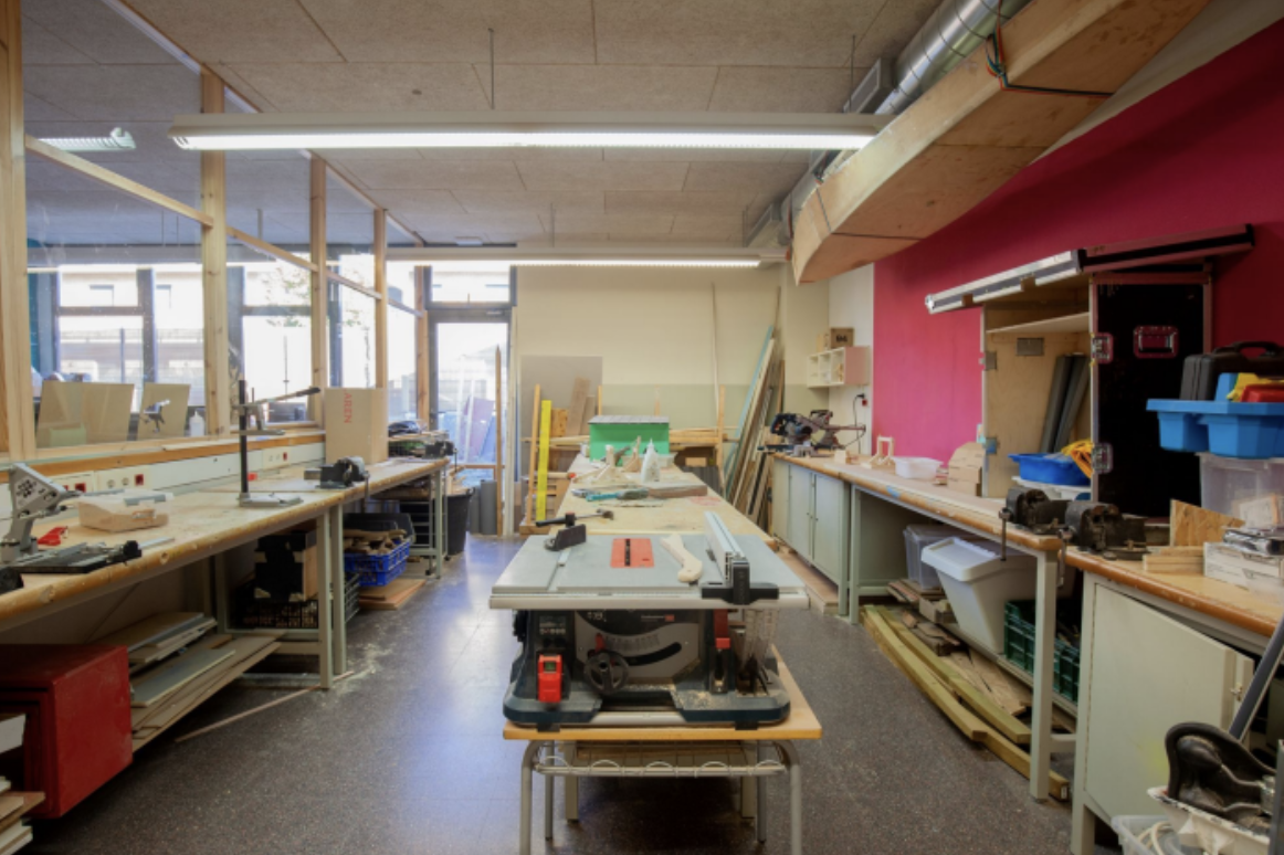 L’Espai FAIG de l’Institut Pla Marcell es divideix en dos espais: un taller on es treballa principalment la fusta amb eines manuals i elèctriques i un altre espai on es desenvolupen projectes amb l’ús de màquines digitals.